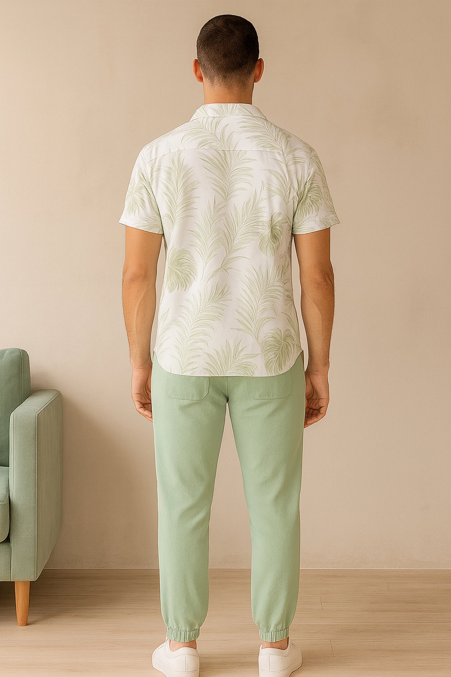 Leafy White Men's Casual Half Sleeve Shirt and Full Pant Set - XPCRDF